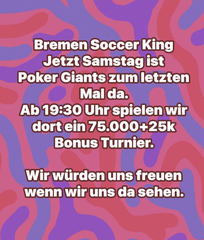 Wir starten am 3. Oktober in Oldenburg an einer neuen Location mit Poker Giants durch!
